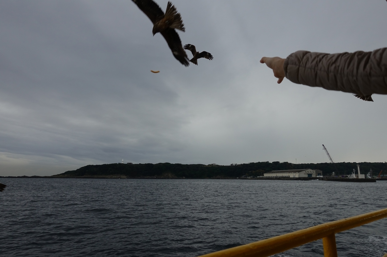 スポットまでの往復には、無数のカモメが寄ってきます。お目当ては、えびせんの餌付け。乗客も1袋50円で買えて、カモメの名人芸を間近で観察できます。ところがしばらくするとトンビの群れが現れ、カモメは追いやられてしまいました。かわいいカモメと戯れたければ、はやめにえびせんを買ってスタンバイしましょう。- 旅行時期