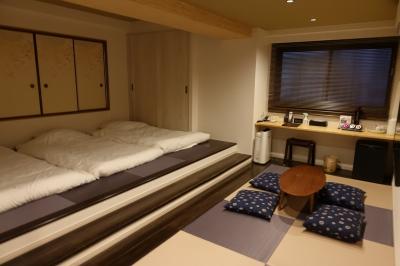 昭和感漂う外観ながら、内部はフルリノベーションされていて最新のホテルと遜色ありません。モダン和室は広々。部屋の段差も、寝室と居間を心理的に区切る効果があり、布団を敷きっぱなしでもだらしない感じになりません。ちょっと腰掛けるのにも重宝しました。