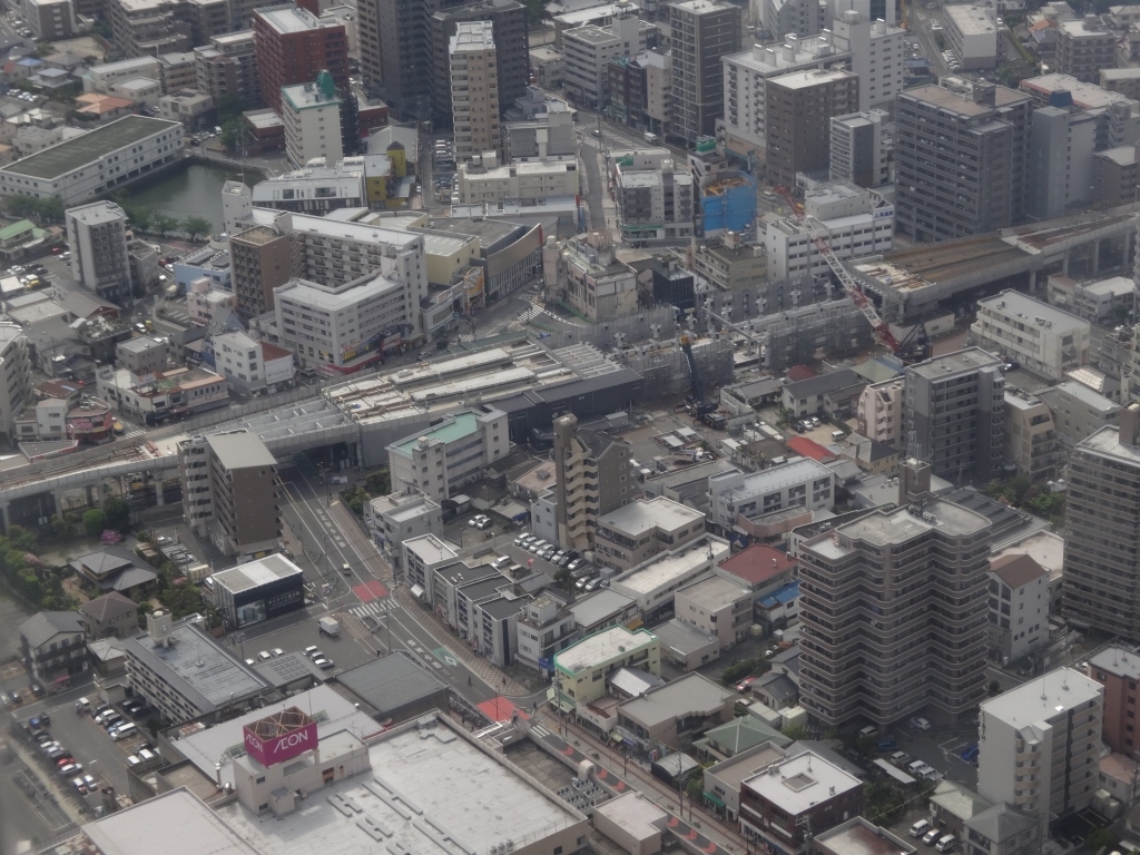 土浦市内の自動車専用高架道路「土浦ニューウェイ」の高架沿いにある、3階建てビルの商店街です。ニューウェイには路線バスの定時性と速達性向上を狙い、バス停が設けられています。つくば万博の際には大活躍したそうですが、現在、高架上を走るバスは1日1本のみ。
