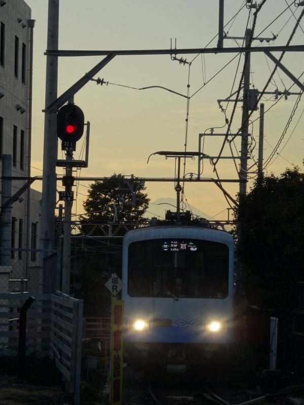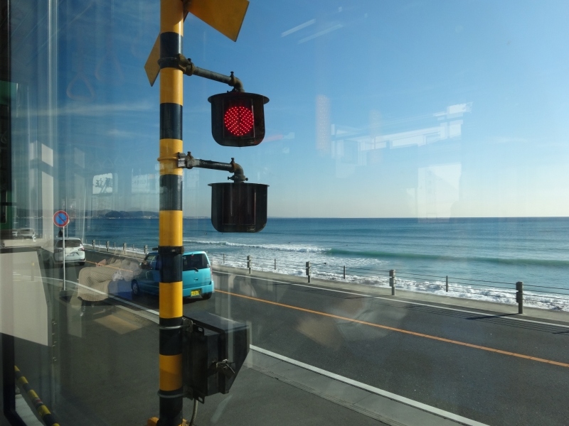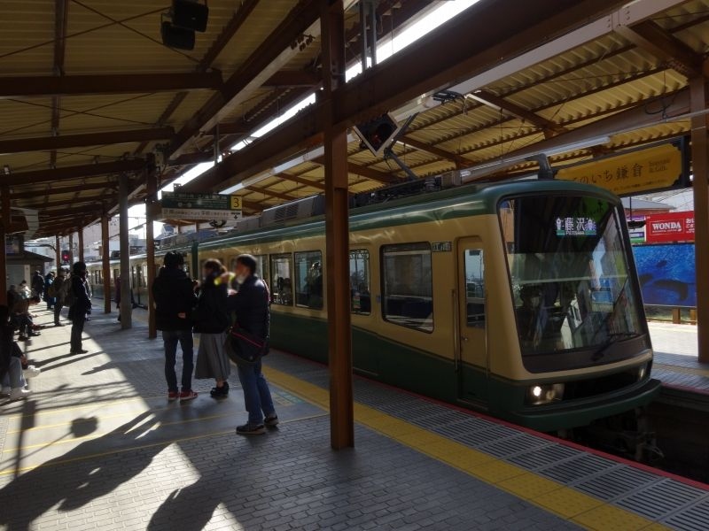 店内に、富士山を背景にした素敵な江ノ電の写真があったので、どこで撮ったのかと聞いてみれば、なんと店先からだとか! 幸い冬場れの日で、富士山のシルエットも映っていたので、同じ構図で狙った写真です。もう少し早いタイミングでシャッターを切った方がよかったように思います。- 旅行時期