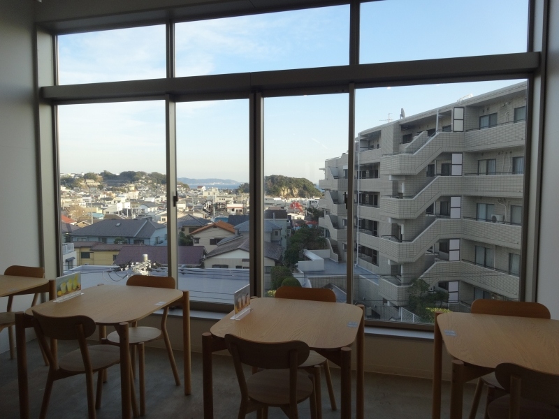 おかげで眺望はバツグン。江ノ島や富士山こそ望めないものの、腰越海岸や江ノ電江ノ島駅を見下ろすことができます。特に江ノ島駅へ出入りする電車は多く、まるでジオラマを見ているようで楽しめますよ。
