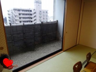 部屋の雰囲気はアパというか、ビジネスホテルらしからぬ純和風。ベランダは庭園風にしつらえてありました。真上の階には大規模な研修室があるらしく、講師控室を兼ねているのかもしれません。