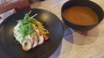 ラーメン屋が集まる、文化街の木造アーケードに現れた、一風変わった「麺屋」です。西鉄久留米駅前のホテル「エスプリ」1階のカフェの支店で、麺メニューは「オマール海老つけ麺」の一本勝負! 濃厚味の洋風つけ麺、贅沢でクセになる味でした。