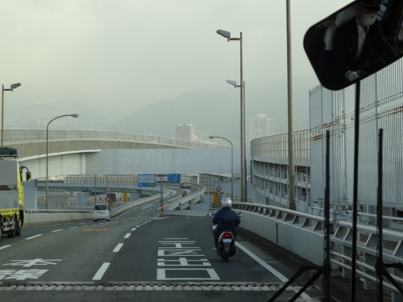 - 六甲山を背景に六甲大橋を渡る車窓は見事です