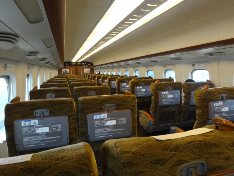 九州新幹線の新八代~鹿児島中央間の部分開業時から走り続ける、ベテラン新幹線。自由席も含め、4列のゆったりシートです。