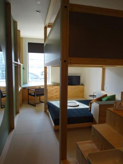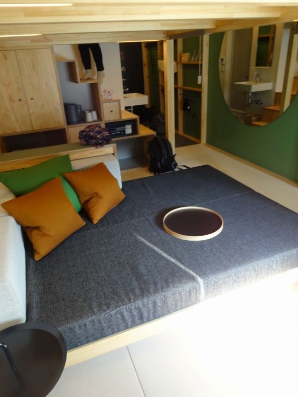 ロビーや客室に持ち込み自由だったり、チェックアウト時間が「頃」になっていたりと、若者がゆるーく使えるアピールを前面に押し出してます。しかしこのユルさは、あらゆる人に嬉しいポイント。部屋の広いデスクはビジネスでも快適だし、畳敷きで靴を脱いで上がれるので、幼児連れにもありがたいです。ヤグラルームなんて、小学生のお子さんも大喜びでは?