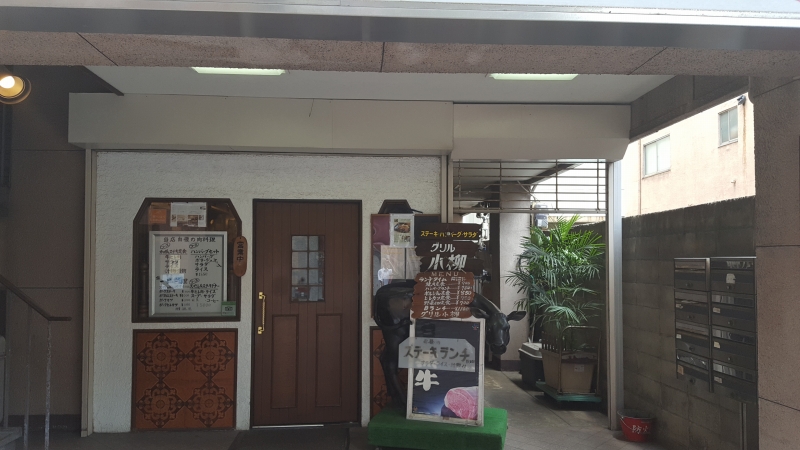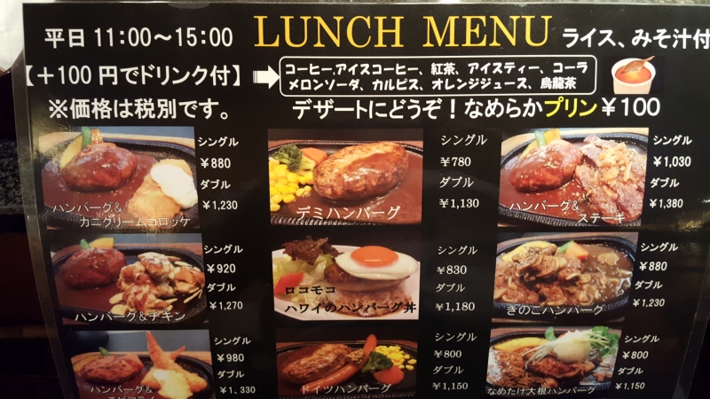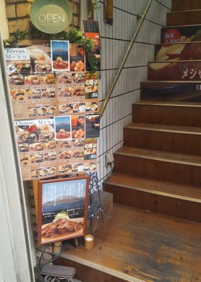 アーケード商店街の2階にあるハンバーグの店。階段を上って、向かって右が禁煙ゾーン、左側が喫煙ゾーンになっています。