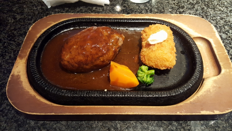 この日の日替わりランチは、肉汁たっぷりハンバーグと、揚げたてのサクサクコロッケが載った鉄板に、ご飯と味噌汁のセット。これでお値段ビックリの、税込み590円でした!野菜分がちょっと足りないので、サラダを足すとよいと思います。