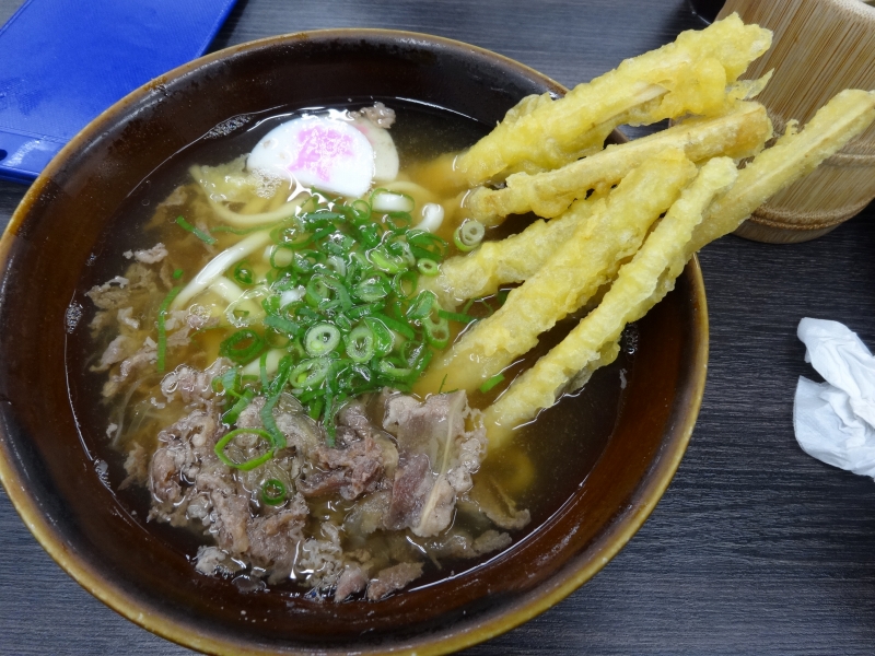 肉ごぼう天うどんをオーダー。ほどほどのコシの麺、澄んだスープは正しい福岡うどんです。これも福岡の特徴である太いごぼう天は、長さも長く、食べ応え充分でした。