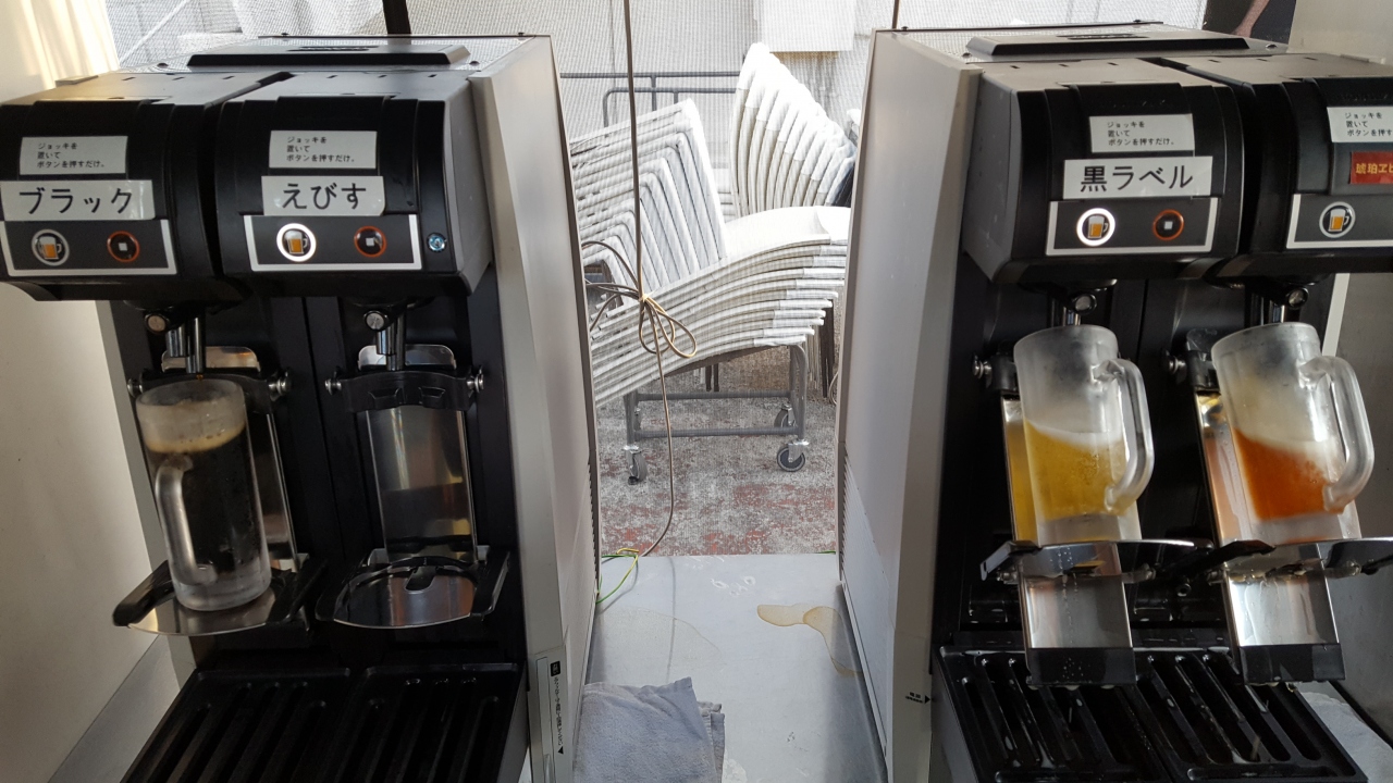 味には定評のある3階のビュッフェレストラン「ARK」の経営なので、料理の味はなかなか。ビールはサッポロの4種で、琥珀エビスも飲めます。冷えたジョッキも使い放題です。