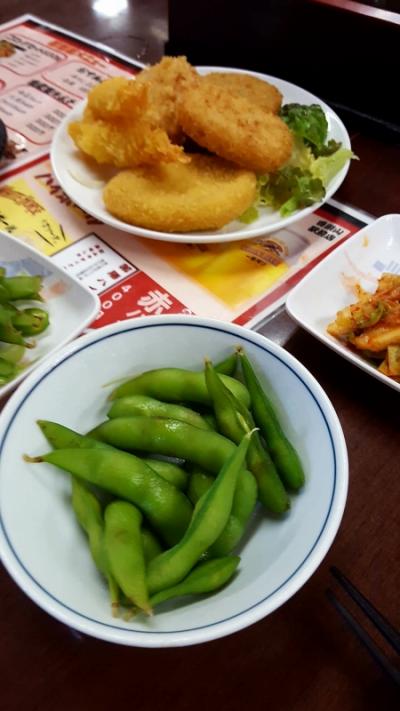 テレビにも盛んに出ていた「セルフ100円生」の正体は、のどごし生。味はそこそこですが、安さが嬉しいです。ビールの味にこだわる方には、一番搾りもあるのでご安心を。こちらも400円という良心的価格。おつまみ類も大変安く、2人で3,000円ちょっとという会計にぶったまげました。
