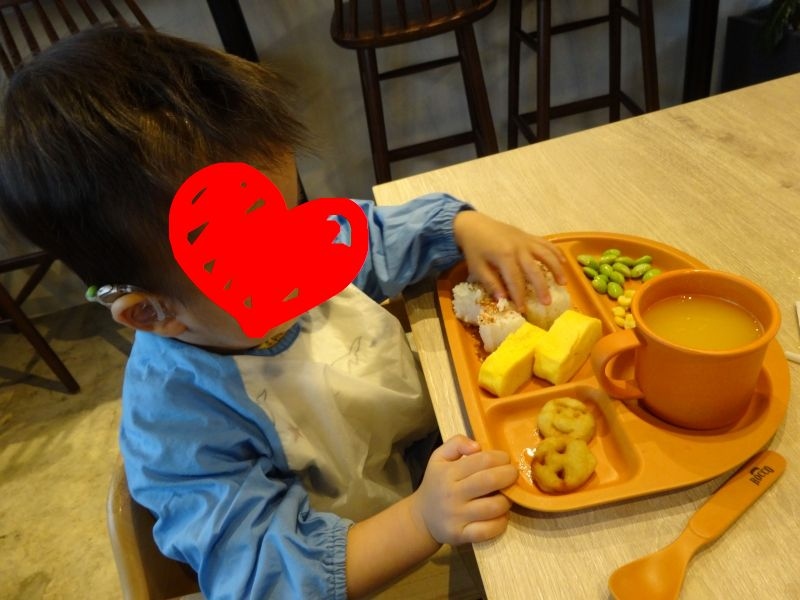 キッズメニューはカレーとおにぎりの2種類。どうしても「お子様ランチ」は濃い味・ハイカロリーなメニューが多い中、おにぎりメインのプレートは安心できました。