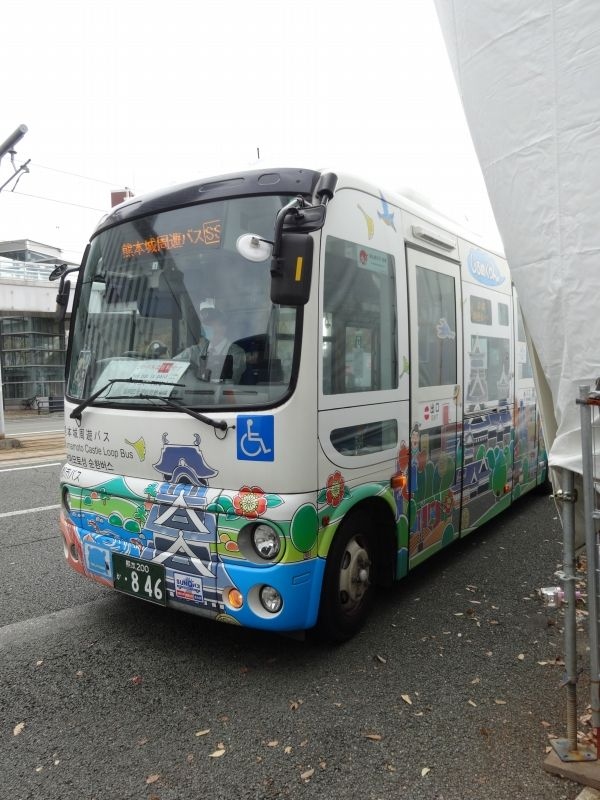 熊本駅から出発、熊本城の二の丸まで登り、熊本駅まで帰って来る観光地周遊バスです。熊本駅から熊本城まで乗車しました。
