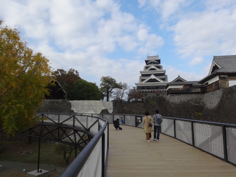 北ルートは本来工事用車両の動線のため、休工日の日祝日限定公開。天守閣に伸びるコンクリート橋はダイナミックで、文化財の復旧はかくも大規模になるのかと感心します。