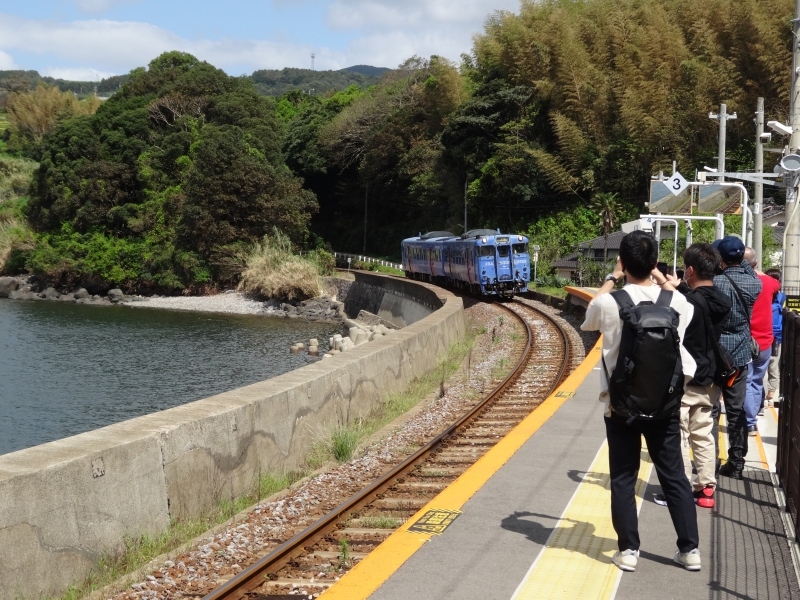 大村湾沿いをトレースするように走る、都市間快速列車です。内海なので防波堤が低く、海の上を走っているかのようにすら感じられます。