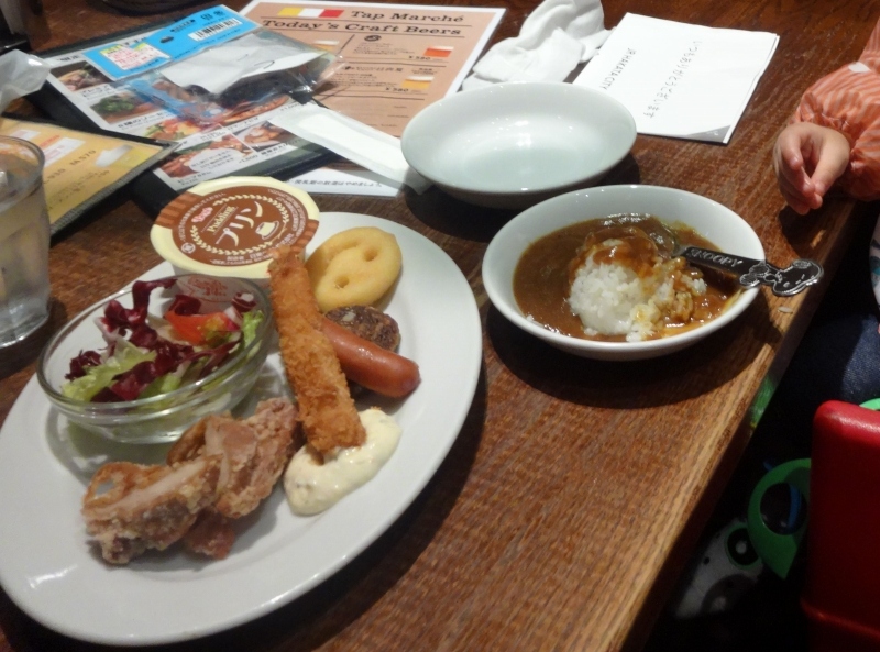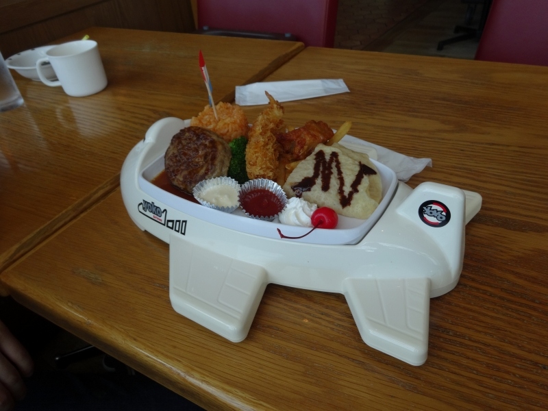 羽田空港第2ビルのレストラン。場所柄お値段は張りますが、お肉料理がおいしいです。お子様ランチは飛行機のお皿で、旅気分が盛り上がります。おまけのおもちゃには、しっかりと「セリア」のタグが付いていました(^^;;)