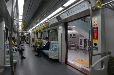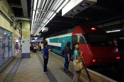 土曜日の昼前という時間帯だったので電車は混んでおり、1等車でも立席客が見られました。2分間隔でやってくる電車も、間に中国からの国際列車が入ると間隔が開き、より激しい混雑になっていました。あまり混んでいる時には、1本待つのも方法です。- 旅行時期