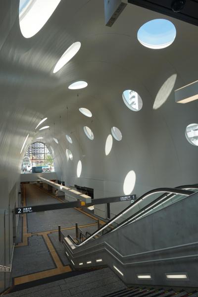 2015年、山陽本線との乗換駅「新白島」が開設。JRと直接乗り継げるようになり、よりスムーズな移動ができるようになりました。宇宙船のような、アストラムラインの新白島駅舎そのものも、旅人には見どころの一つといえます。