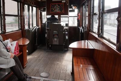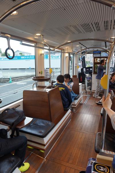 最新鋭の低床路面電車「MOMO」も素敵ですが、古い電車を磨き込んだ「くろ」も味わいある電車です。