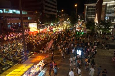見どころは、4日夜の「一万人のそろばん総踊り」。久留米のメインストリート・明治通りを封鎖して、市民が2時間近くに渡って踊り通します。市内の企業や団体の協賛も盛ん。年々参加者も増加傾向にあり、1万人を軽く超えているのでなかなかの迫力です。