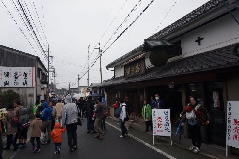 勝屋酒造では蔵開きを開催。できたて日本酒の試飲や、あまざけのふるまいでほろ酔い気分に。年代モノの蔵も、お見逃しなく。