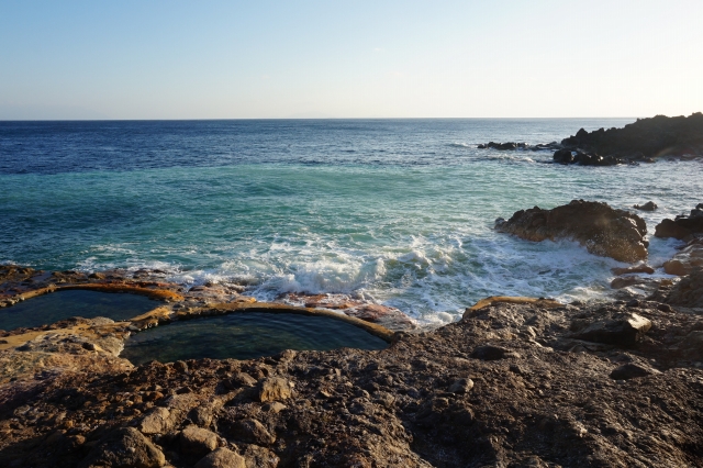 浴室は、室内と中庭が連続した解放感のある造り。想定以上の人気なのか、混み合っていてなかなかくつろぐ場を見つけられないのが残念です。