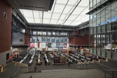 屋根がかけられたので、雨の日や夏の日差しの中でのイベントも快適。以前の六角堂広場でも開催されていた「やきとりフェスタ」や「酒フェスタ」など筑後ならではのイベント以外にも、クラフトビールの祭典「九州ビアフェスティバル」も開かれるようになりました。