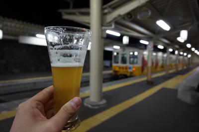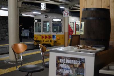 電車を見ながら、ビールで乾杯!高松築港~瓦町間は、琴平線と長尾線の2線が乗り入れていて、地方私鉄の駅としてはひっきりなしに電車が出入りします。ご当地キャラ「ことちゃん」や、駅ビル「瓦町FLAG」などラッピング電車も多く、見ていて飽きません。