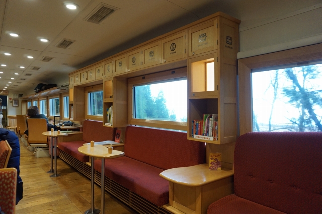 普通列車兼用車両というのが特徴で、ボックス席は狭めです。