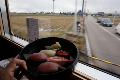 車内の「すしカウンター」はみどころ。車内でのお寿司&お酒を楽しみたい列車です。