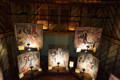 屏風絵は邪気を払うため、夜、玄関先に外を向けて立てられたそうです。ロウソクを立てたのは、火のゆらめきでよりおどろおどろしく見せるため。展示室では祭りの夜に玄関先に立てられた様子を再現しており、雰囲気がよく表れています。ここだけは、写真撮影もOKです。- 旅行時期