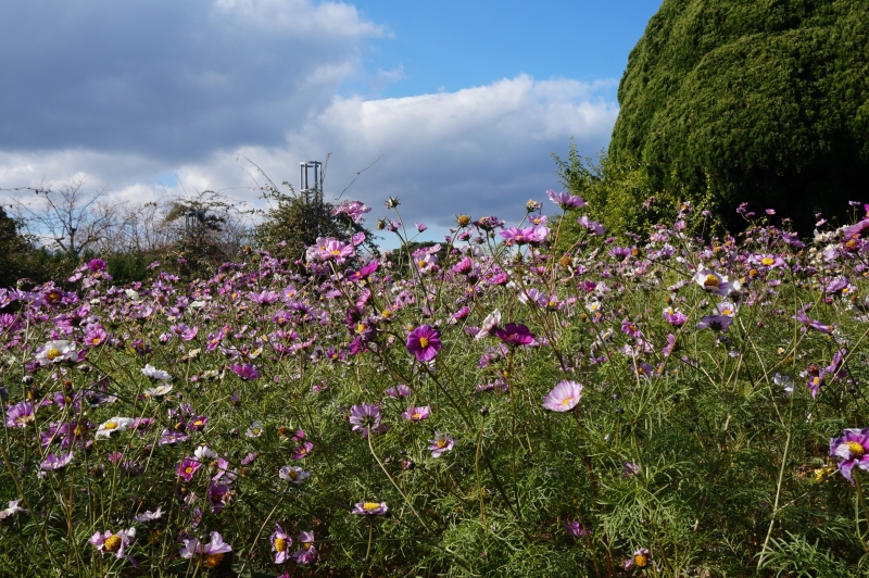 花のテーマパークともいえる、能古島アイランドパーク。冬はシーズンオフになりますが、今年は12月17日の段階でも、遅咲きのコスモスやヒマワリが残っていて楽しめました。「のこのこボール」や貸別荘も空いているので、週末でも貸切り状態で楽しめますよ。もちろん、寒さ対策は万全に!
