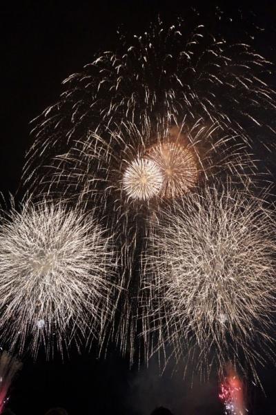 今年の花火競技会は、残念ながら雨。台風が南の海上に接近中、90%の降水確率であっても、中止にはなりませんでした。