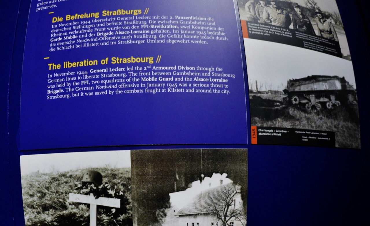 ストラスブールをドイツ占領下より、解放したのはルクレール将軍との写真と説明がある。パリを解放したのもルクレール将軍である。軍事的にそれほど重要ではない、ストラスブールを自由フランス軍によって解放されたという形式をとったのは、首都パリと同様にストラスブールはドイツとフランスと争いあった地であるため、フランスが解放したという政治的な理由であったと思われる。英軍を主体とする連合軍はライン川下流で、米軍を主体とする連合軍はラインが中流でそれぞれライン川を渡河している。ライン川上流にあるストラスブールの占領が軍事的に意味があったとは思えない。
