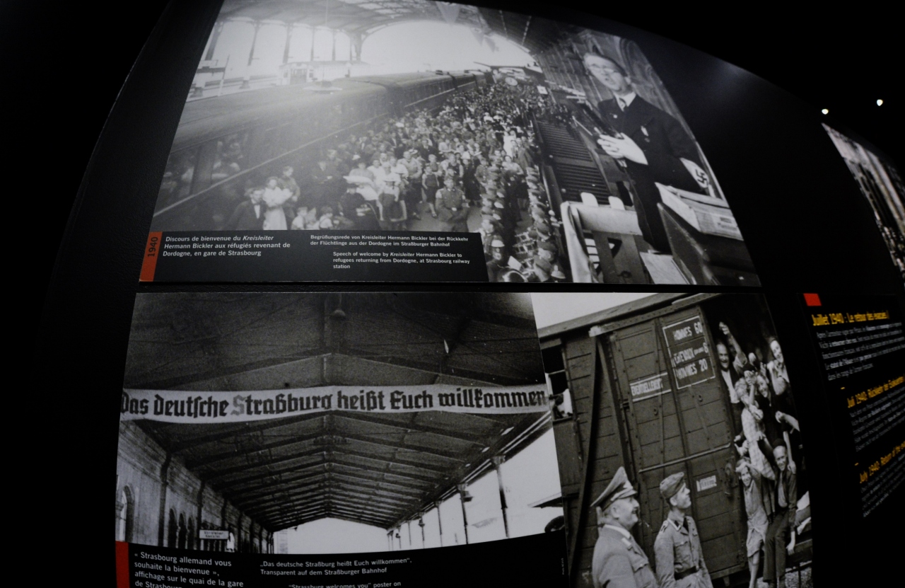 アルザスの住民はフランスからも信頼されてなかった。強制的に移住させられた住民がアルザスに戻れたのは、フランスが降伏し、ドイツがアルザスを占領した後である。その際の展示がある。故郷から追いやったのはフランスであり、故郷に戻してくれたのはナチスドイツである。