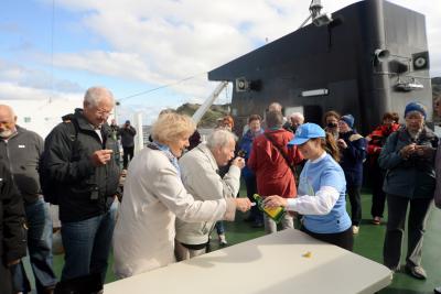 搭乗客より現金を受け取ることを禁じられているので、切手の購入と絵葉書の発送を拒否。