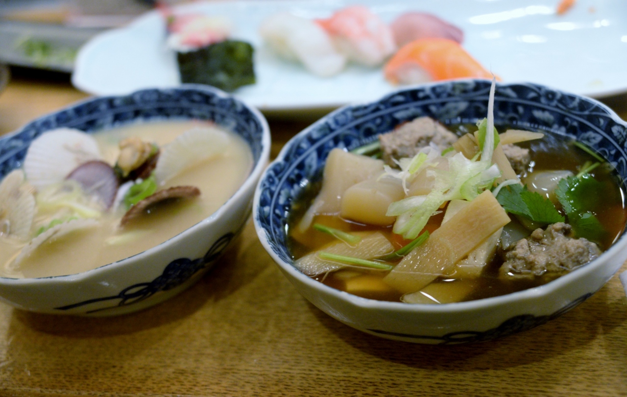 お奨めは寿司の後に、あぶらかれい、春わかめのたっぷり味噌汁、根室のサンマ、筍の刺身、上りかつお、春野菜の天ぷら
