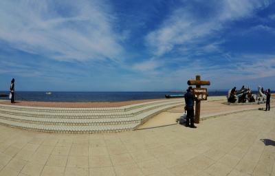 大間から北海道へフェリーで向かう途中に立ち寄る。まずは魚喰いの大間んぞくで本日二度目の朝食。これから向かう北海道を大間岬から眺めようとしたが、快晴にもかかわらずよく見えない。