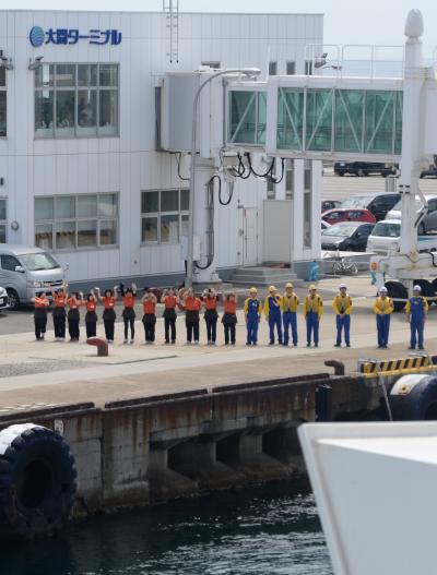 • フェリー出港後、岸壁から15分以上手を振り続ける職員 大間フェリーターミナル