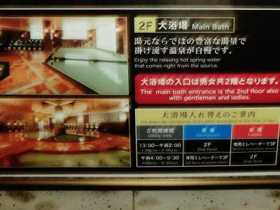 温泉の色が淡い茶色、タオルに染み込んでしまった。湯船の異なる4種の風呂あり楽しめる。但し、宿泊客専用の展望風呂には入ることはできない。