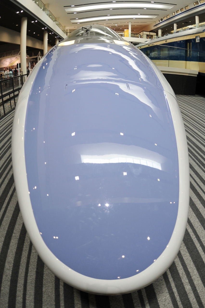 新幹線では500系が展示されいる。孫達はこれには乗ったことがなく、見たことがない。この500系には私は出張等で何度も乗ったが、出入り口で頭をぶつけたことがあり、利用者として私の評価は低いが、美しい流線形をしており孫たちの評価は高いと思う。