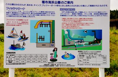 ウニーク北側に隣接して、「東日本大震災(大津波種市地区)の爪痕」との立看板があり、防波堤の海側がすべて破壊されたことを写真に依り、示している。幸いして人的被害は0であったと説明している。