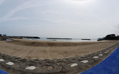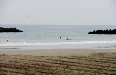 防波堤に囲われた人工海浜で水泳、砂遊び可能 7/21訪問時サーファー3人のみ