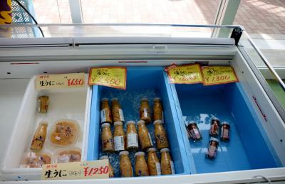 店ではつぶ貝はあったが宅配便への孫への送付は困難とのことであり、購入はあきらめた。店では、種市産生ウニ、塩ウニ、つぶ貝、野田村産ベビーホタテ、荒海ホタテ販売中。隣接してうに栽培事業センターがあり、このセンターで養殖されたウニがここで販売されているのかもしれない。