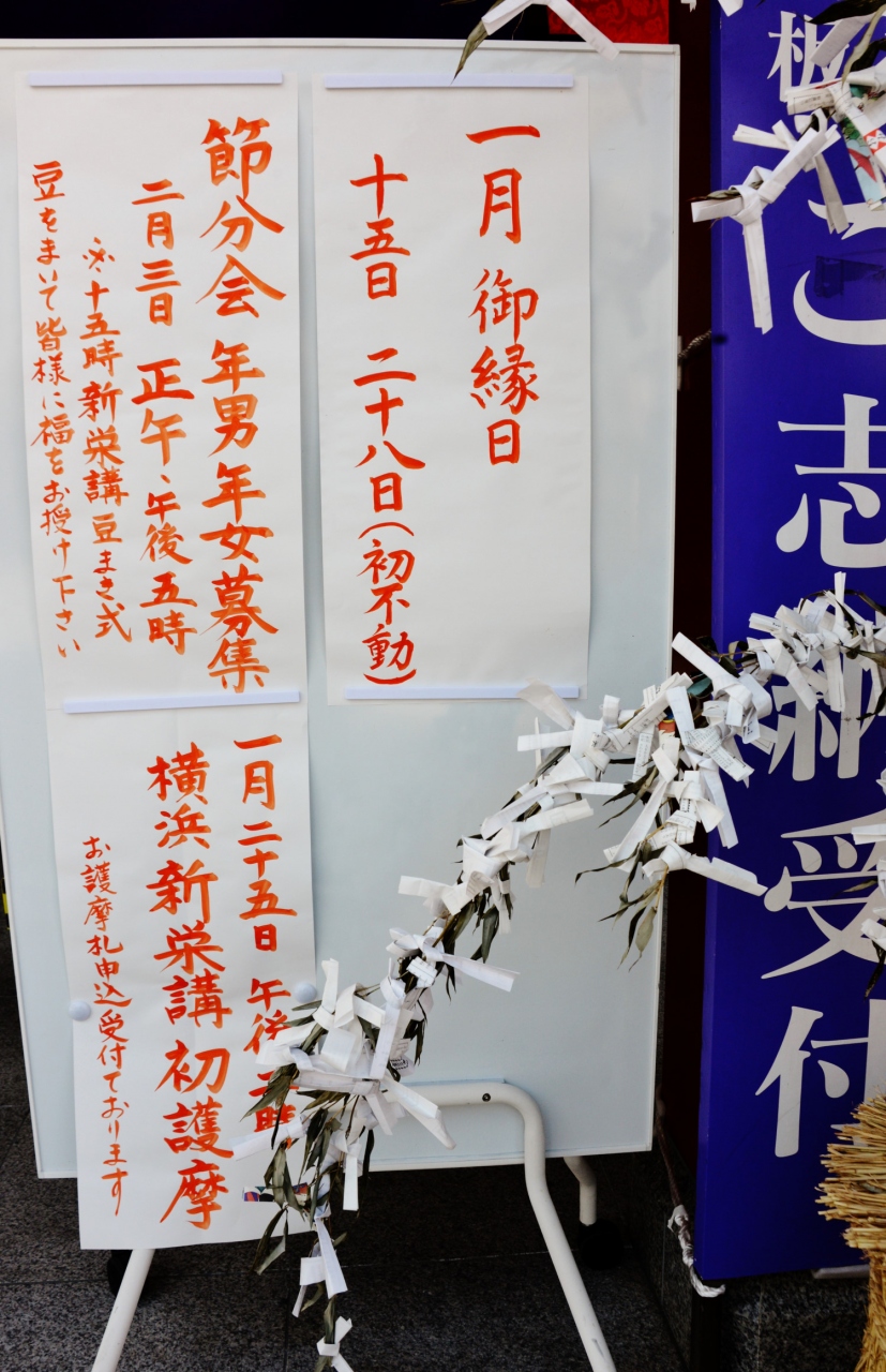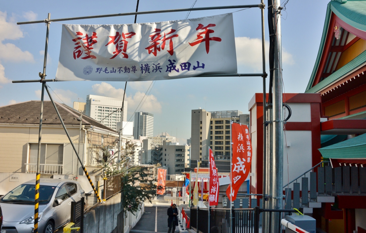野毛山の街歩きをしていたら見つけたのはここ成田山横浜別院。見つけた理由は、黒いスーツの男数十人の集団が坂を下ってきたこと。堅気の商売であることは間違いないが、持っていた袋には横浜成田山の表示あり。きっと建設会社の社員が本年の安全祈願のために全員揃って成田山で大護摩を焚いてもらい、お祓いを受けたのだろうと思った。