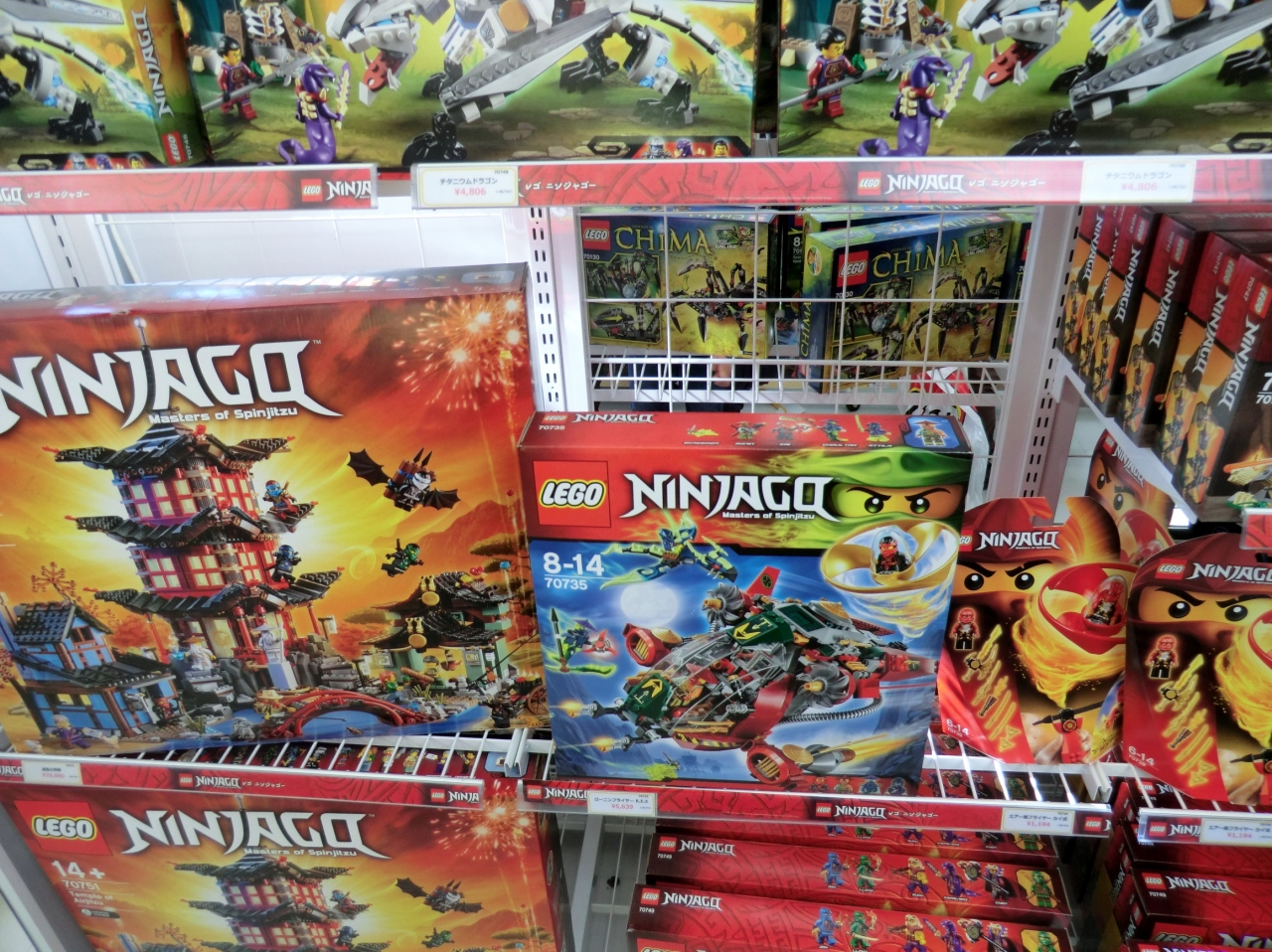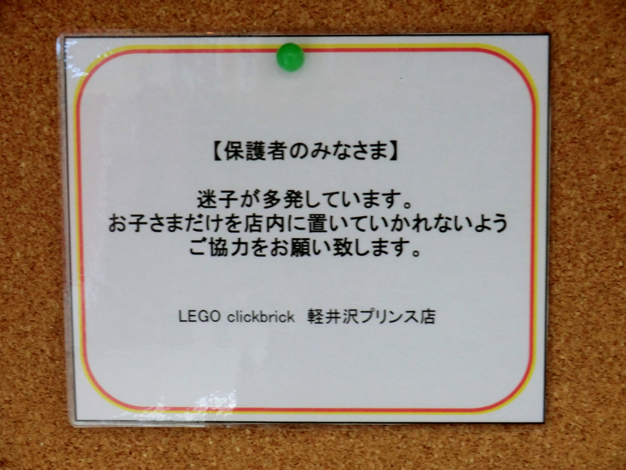 スキーに専念したい母親から孫息子を預かり、ここに連れて行き、二回も遊ばせることができた。店内ではばらばらのブロックから自分で組み立てることがことが可能な台が二か所設置され、孫を遊ばせることができた。最新から従来からのレゴブロック全製品が揃っており、中国又は台湾から旅行客の購入が目立っていた。店内には、「迷子が多発しています。店内にお子様だけを置いて行かれないようご協力をお願いします。」との注意書きがあることから、親たちは子供をここにおいて買い物に出かけるようである。