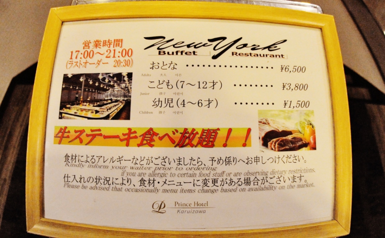 三世代で巡る軽井沢スキー旅行 二日目の夕食はプリンスホテルウェスト ニューヨークで