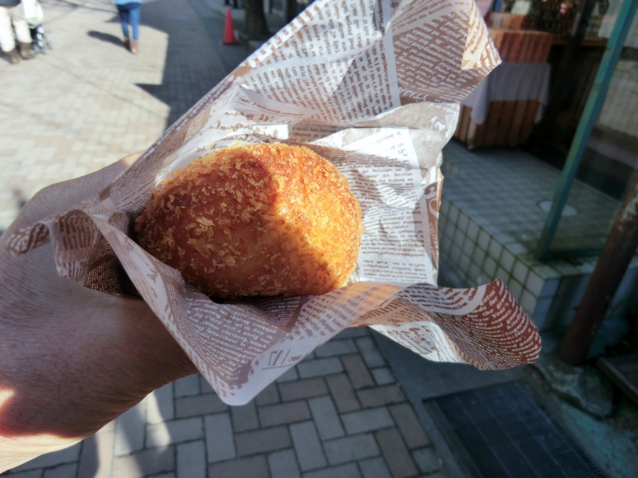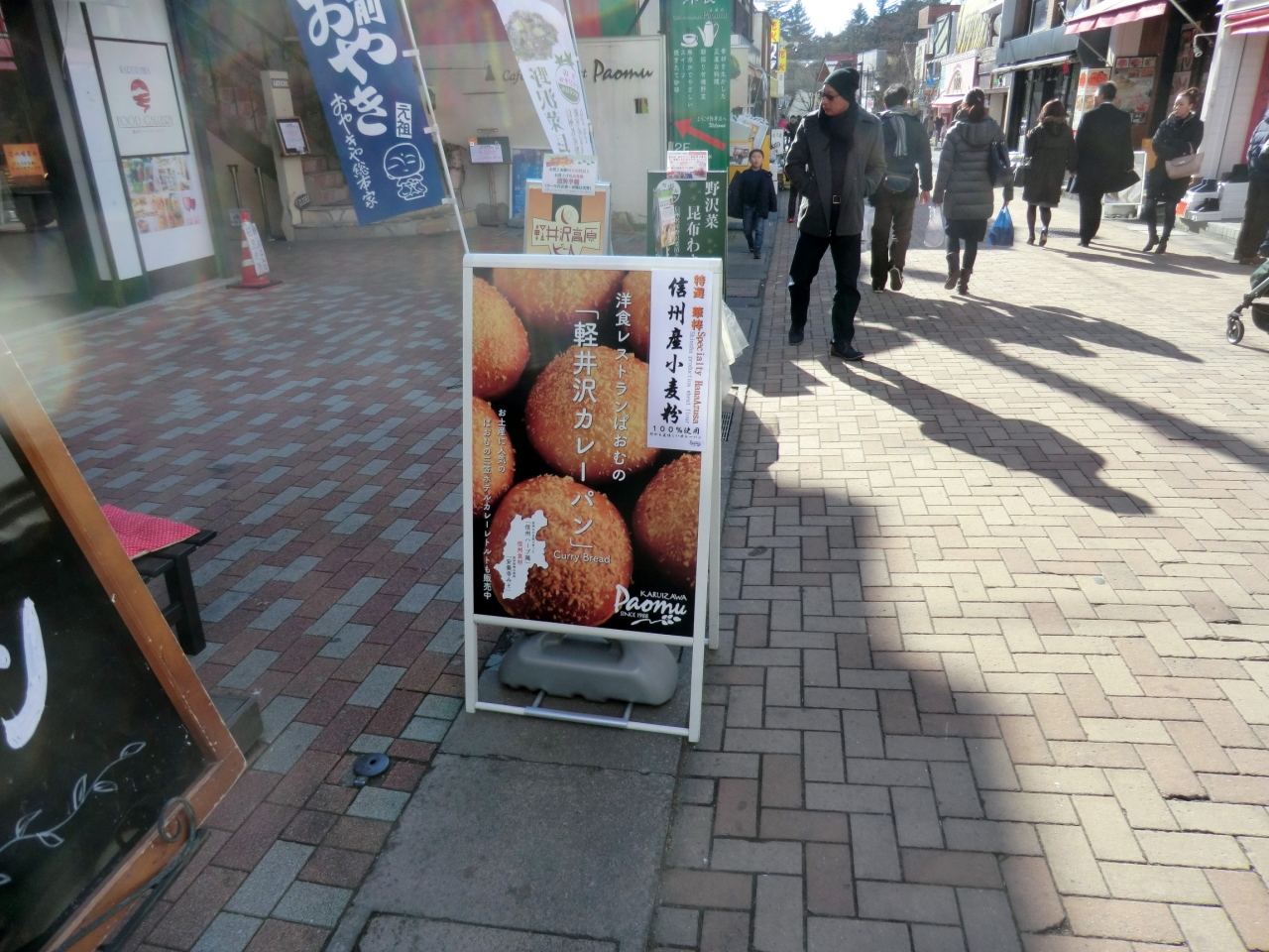 長い列を作っている店で販売しているのはカレーぱん 旧軽井沢での食べ歩き