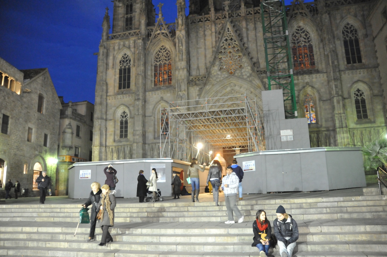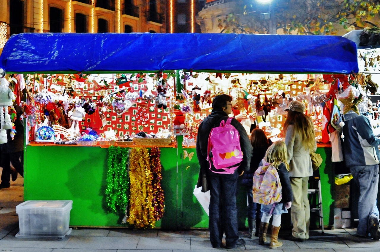 12月カタルーニャ美術館周辺は露店屋台で埋め尽くされ買い物客であふれている