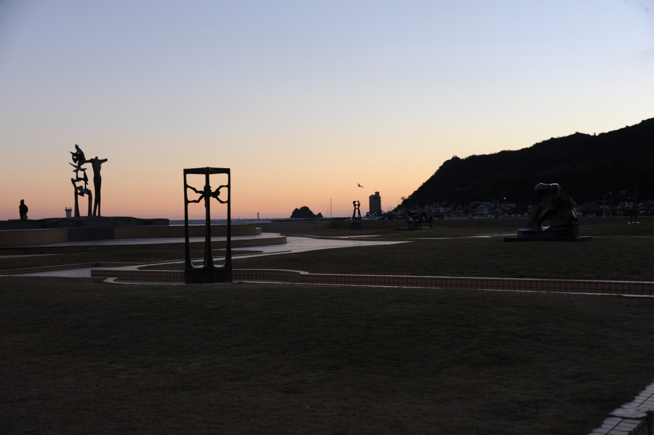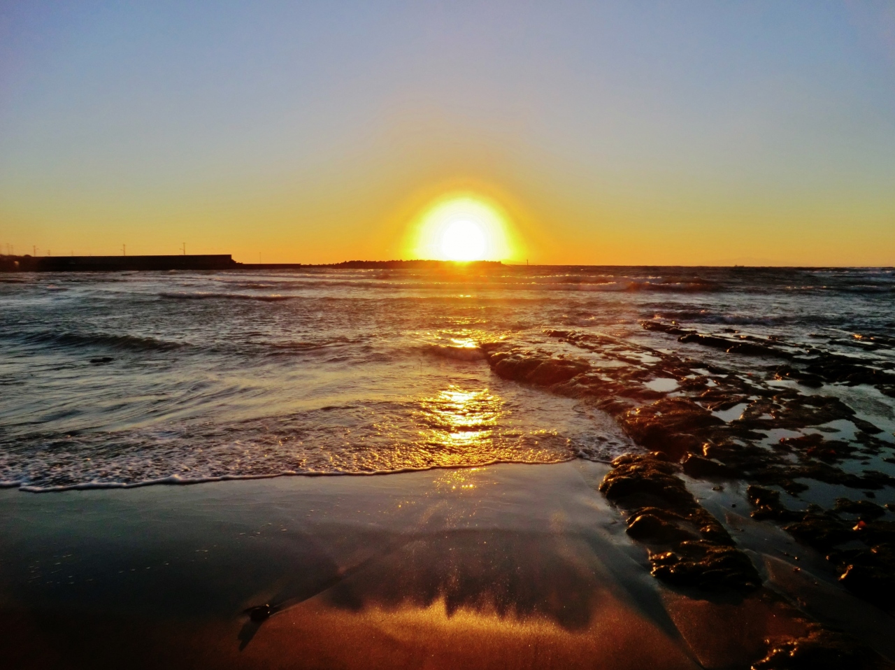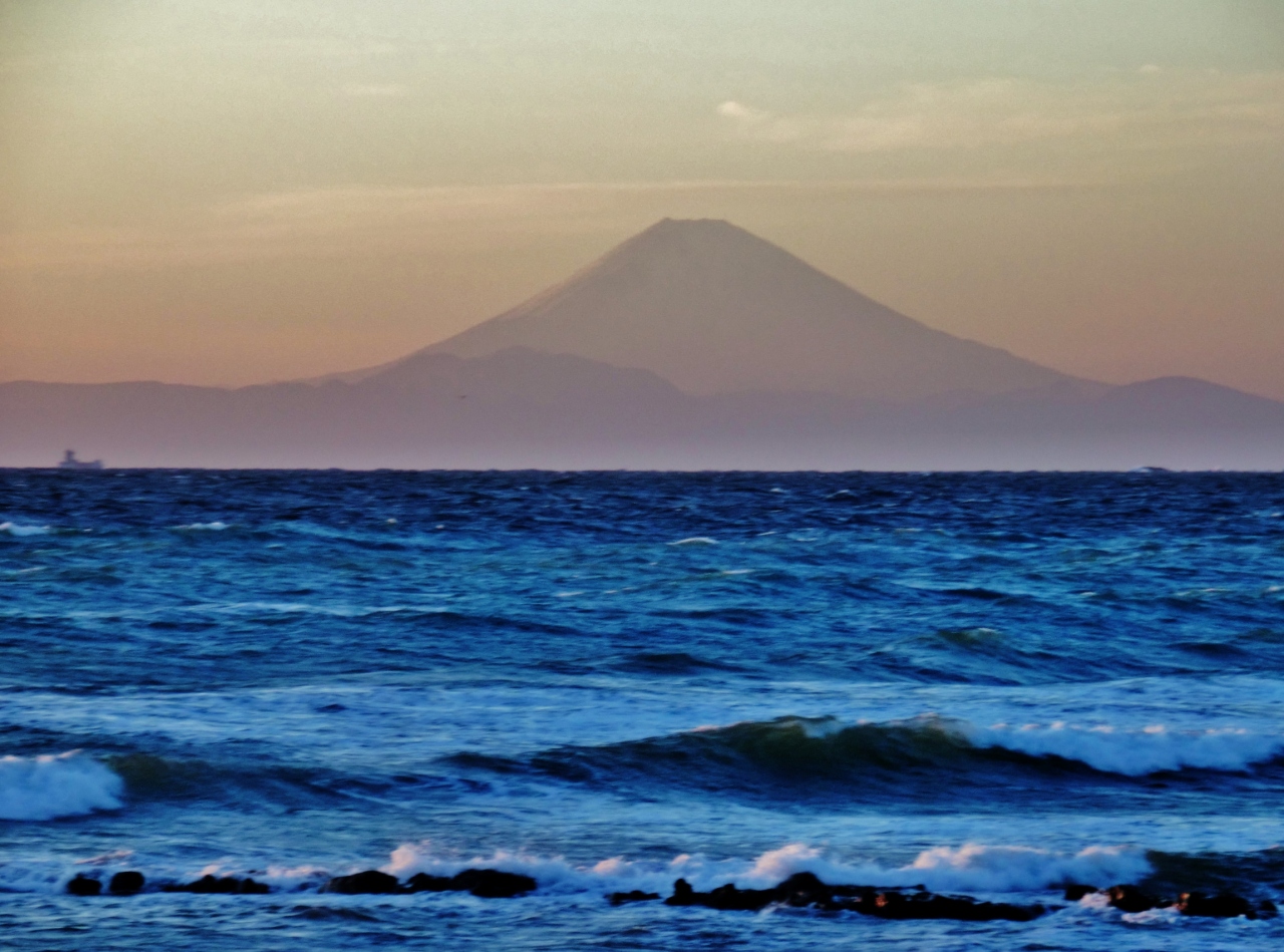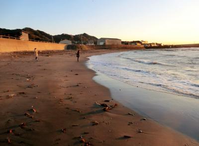 館山市内で唯一の太平洋岸に面する海水浴場。従って、太平洋からの波が打ち寄せ、四季を通してサーフィンで賑わっている。海水浴は、最近は浜が海によって浸食され次第に狭くなっているので果たして夏はどうなるのであろうか。ここからは、西の太平洋に沈む夕日、夕日に輝く富士山が見える。ここには孫と車で来て、無料の駐車場に止めて、カニを探したが一匹も見つけらなかった。冬は日没の頃、快晴の時が最も美しい風景が見られる。